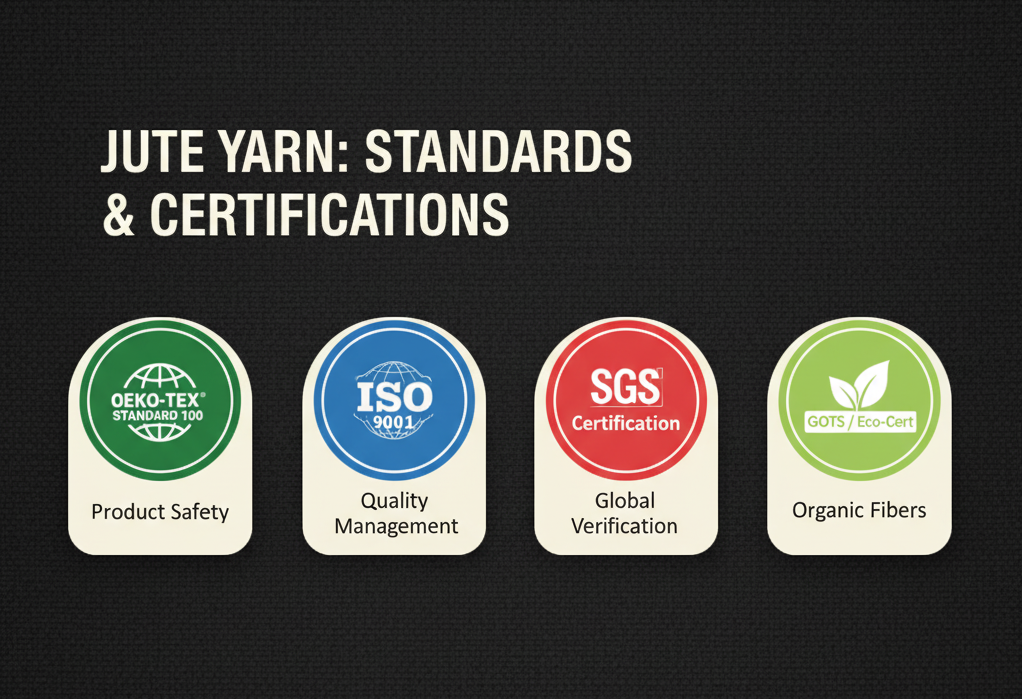 در تجارت بین المللی و صادرات نخ جوت، رعایت استانداردهای جهانی و دریافت گواهینامه های معتبر از اهمیت بالایی برخوردار است. این گواهینامه ها کیفیت محصول را تضمین و اعتماد مشتریان خارجی را جلب می کنند. در ادامه مهمترین استانداردها و گواهینامه ها بیان شده اند.